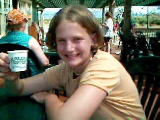 And here is Sarah, enjoying that cup of vanilla macadamia nut coffee. She was