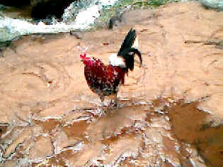 rooster had two hens with him, and he was quite adept at trying to steal some of