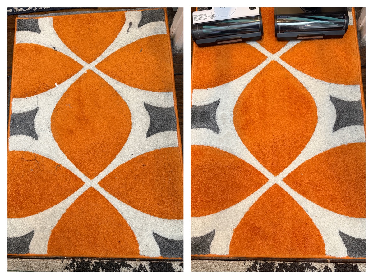 I’ve got this super disgusting rug. Just look at it (left)! I ran both vacuums with the motorized brush. They both did a fine job. LVAC-200 on the left, the LVAC-300 on the right.
