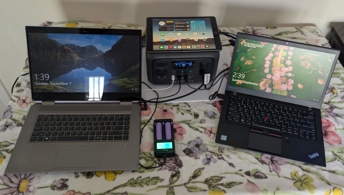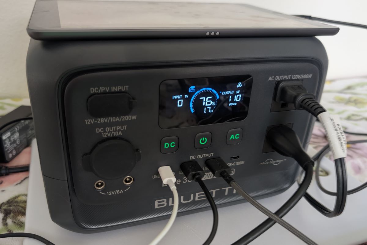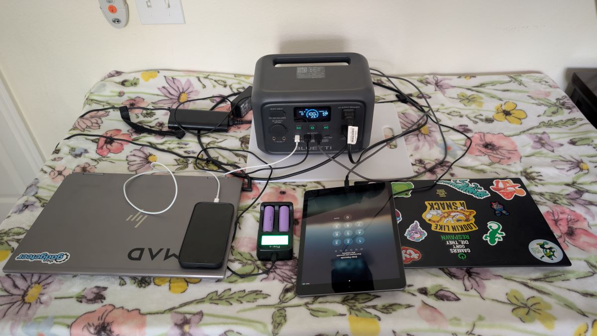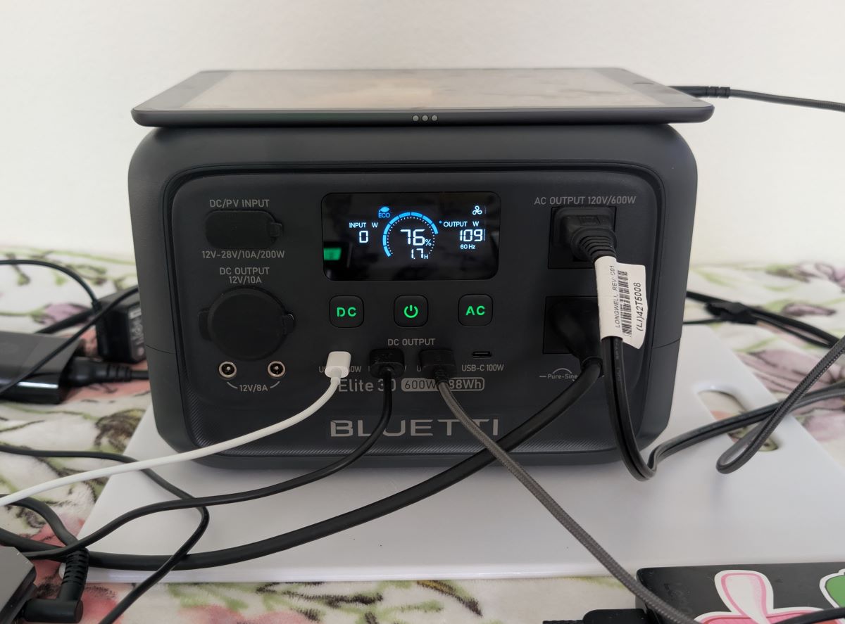 Luckily, so far this hurricane season has been really quiet for us here, knock on wood, meaning I haven’t had to try out the Bluetti ELite 30 V2 for my main purpose. With that said, I have tried to use it as I intend to, should I need it. I plugged in 2 laptops, an iPad, a phone, and a battery charger for my flashlight batteries, and it handled that job like a champ. It charged everything in a reasonable amount of time, with some charge leftover at the end. I’ve also used it with my work laptop to extend the amount of time I can be away from my desk in my home office. I don’t like to sit in there all day being isolated. By using the Elite 30 V2, I can run my laptop battery down twice and charge it twice with about 20% left. That lets me go all day long without having to be tied to my desk.