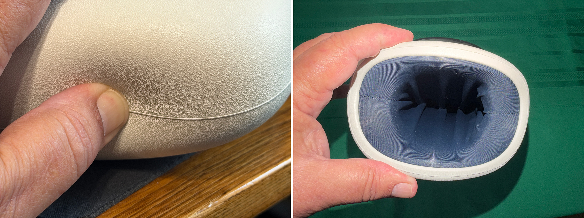 Using the Bob and Brad HandSpa Pro Hand Massager is very much like the Comfier massager. At first, I didn’t like the smaller size of the Bob and Brad Hand Massager as compared to the Comfier. However, after using it for the past few weeks, the snug fit suits me, and it worked very well. Its outer layer is pliable and soft, and seems durable. Just like the Comfier, it feels like leather, but it is synthetic. This inside material, which your hand touches, is a very soft and smooth polyester/nylon material. It is very thin. I’m a little concerned with the stitching on the very outside edge. It may come apart after many uses if I’m not careful.