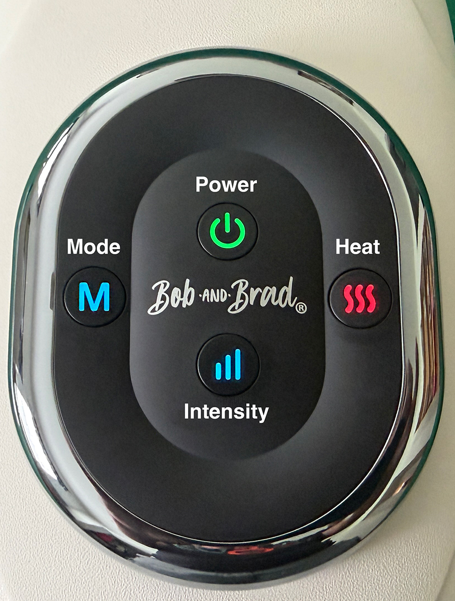 The control panel has 4 buttons for: Power, Massage mode, Intensity, and Heat on/off. The power button is just a simple on/off after a 1.5-second hold.