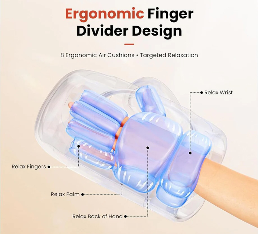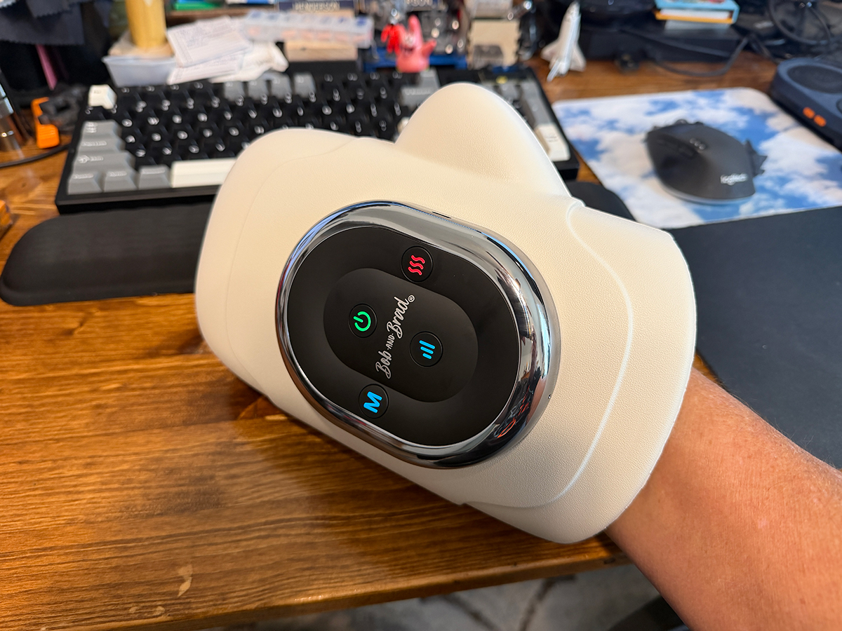 The Bob and Brad HandSpa Pro Hand Massager is a compact, battery-powered device that utilizes rhythmic compression and heat to alleviate pain in the palms, fingers, and wrists.