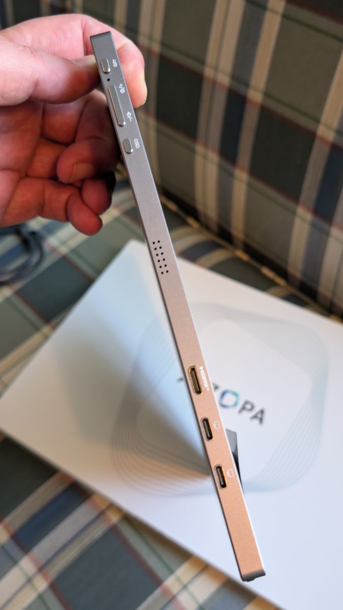 The ARZOPA Z3FC is a USB-powered portable monitor with a 2.5k resolution and a 180 Hz refresh rate that’s about a thin as you can get. It comes with a nice travel sleeve and all the cables you need to get up and running in a flash.
