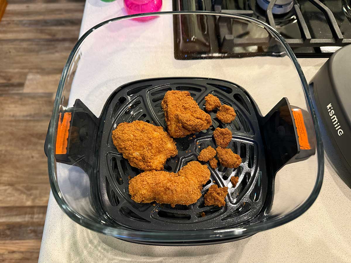 I tested the Kismile Glass Air Fryer several times with other foods like frozen biscuits, smoked sausage, tator tots, reheated chicken breasts, and hard-boiled eggs. Everything turned out great.