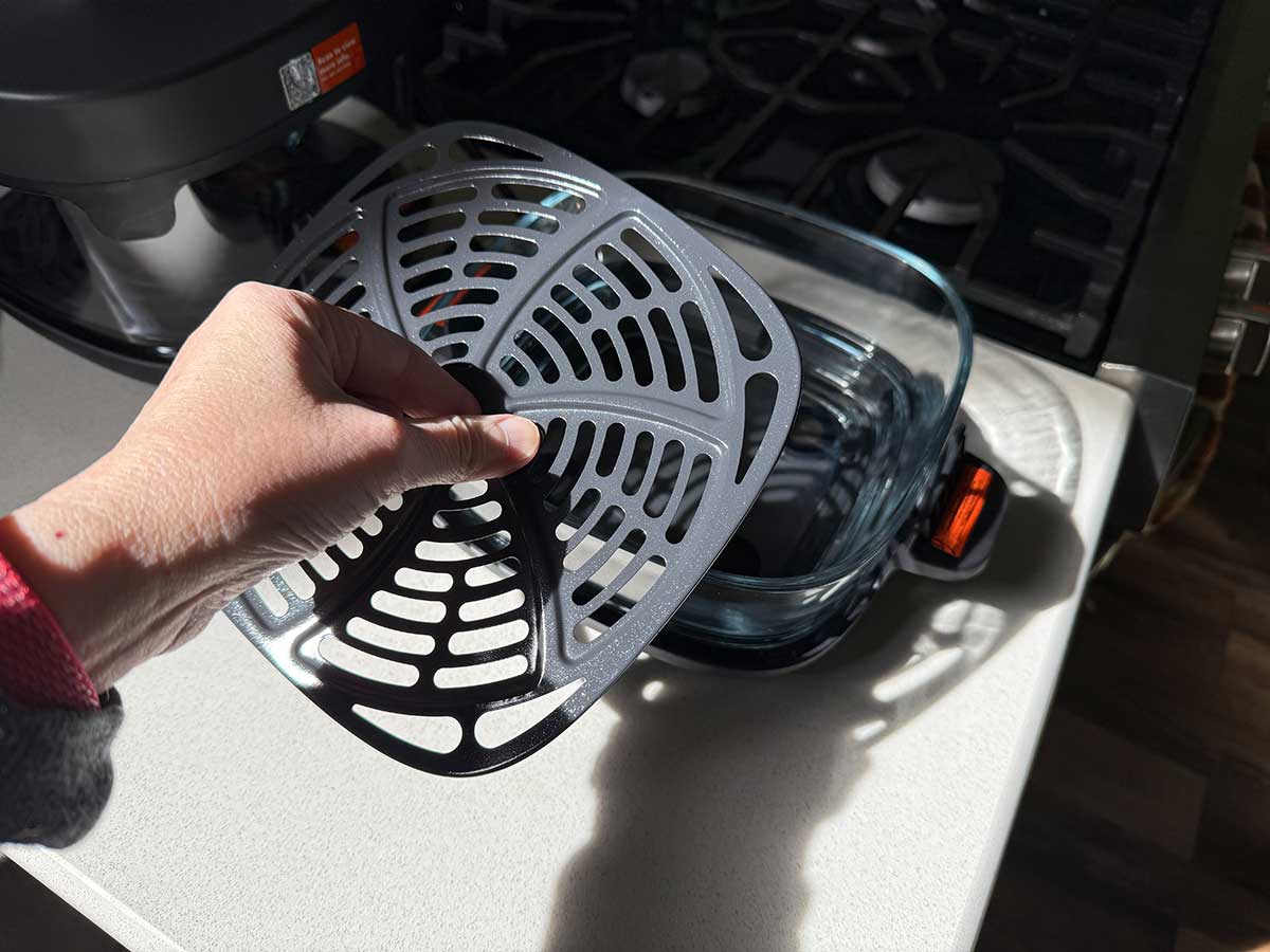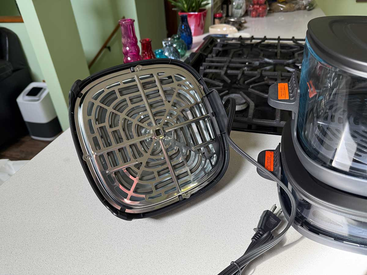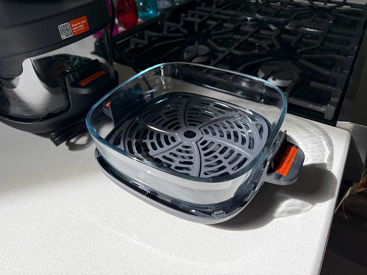 That said, the detachable heating pod design takes a little getting used to. You’ll need extra counter space to set it down when flipping food, and the temperature range is limited compared to more traditional air fryers. At a regular price of $179.99, it’s not the cheapest option, but you’re paying for its unique dual‑purpose storage and cooking setup, which may justify the price if space-saving and visibility matter to you.