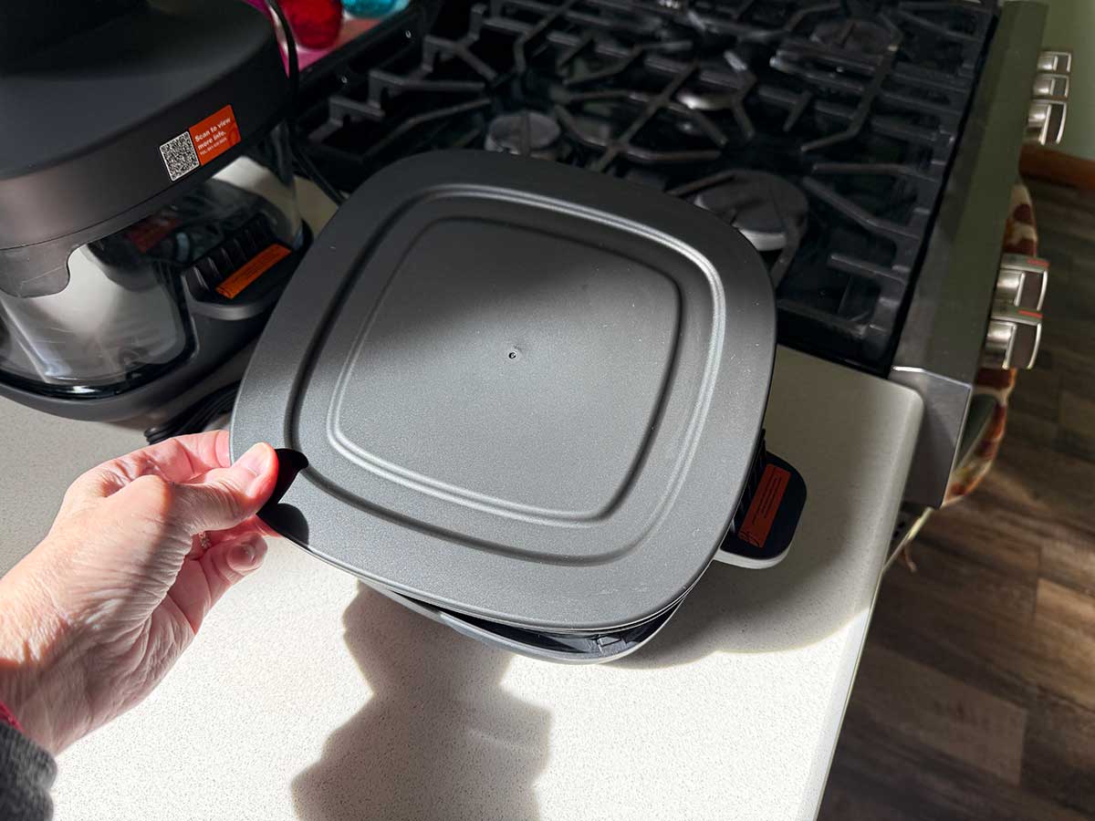 • It would be great if there were some way to prop the lid on the side during cooking so you wouldn’t need more counter space for it