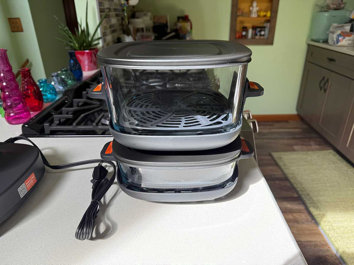I loved being able to view the food through the glass container while it was cooking. Instead of a small window, I could look at the food from all sides.