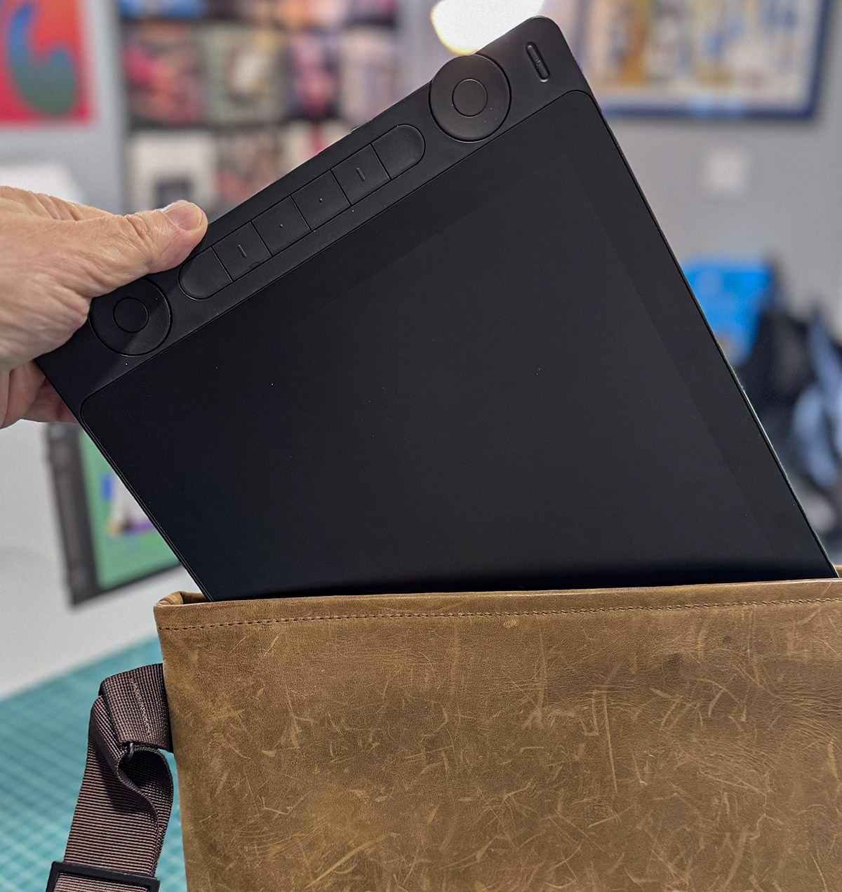 You might ask yourself, “Why would I want to lug this around with a laptop when I can just get an iPad?” The Kamvas 16 (Gen 3) is a monitor you draw on. Like any monitor, it needs to be wired to a computer. The advantage is that you can use any app that your computer will run and see it on the Kamvas 16. A tablet such as the iPad or an Android-based tablet requires its own apps.