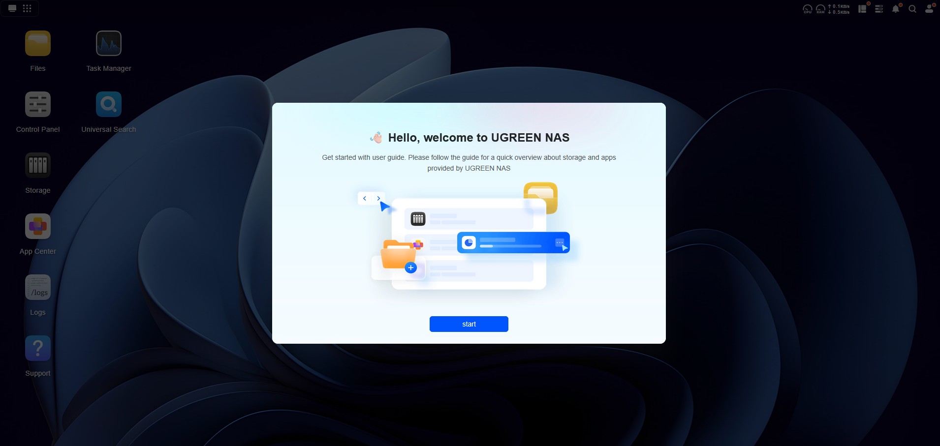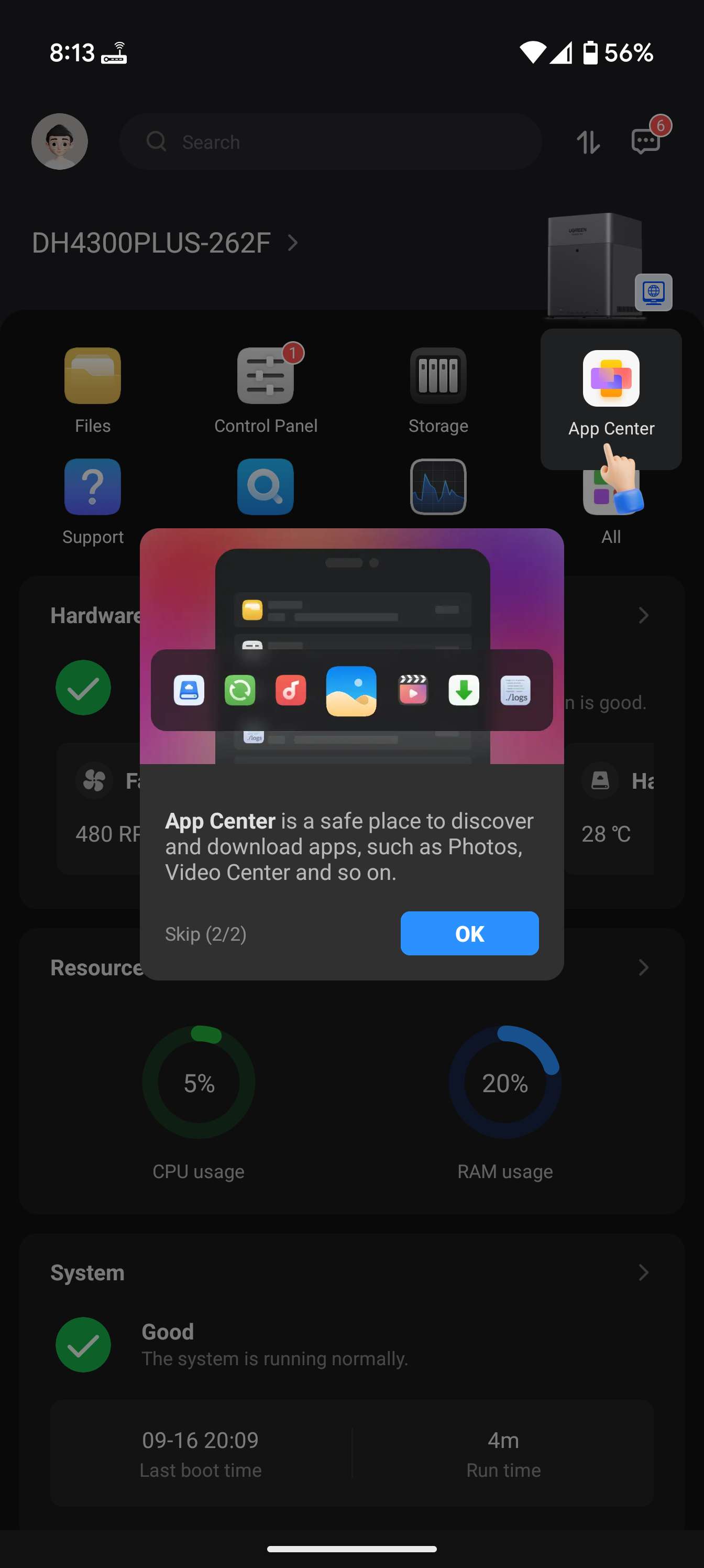 The manual for the UGREEN NASync DH4300 Plus can be downloaded here if you misplace it. The manual is more focused on assembly and initial setup, however, and does not really go into detail on specific settings once up and running. For that, there is a support section in the UGREEN operating system once you connect. UGREEN has a few tutorial videos, and there are plenty of alternative sources online that explain what all the settings mean and how best to configure them. I chose to use the mobile app during initial setup, although you can use the web interface as well. I downloaded the UGREEN app and opened it up. It guides you through the process of connecting and setting up an account.
