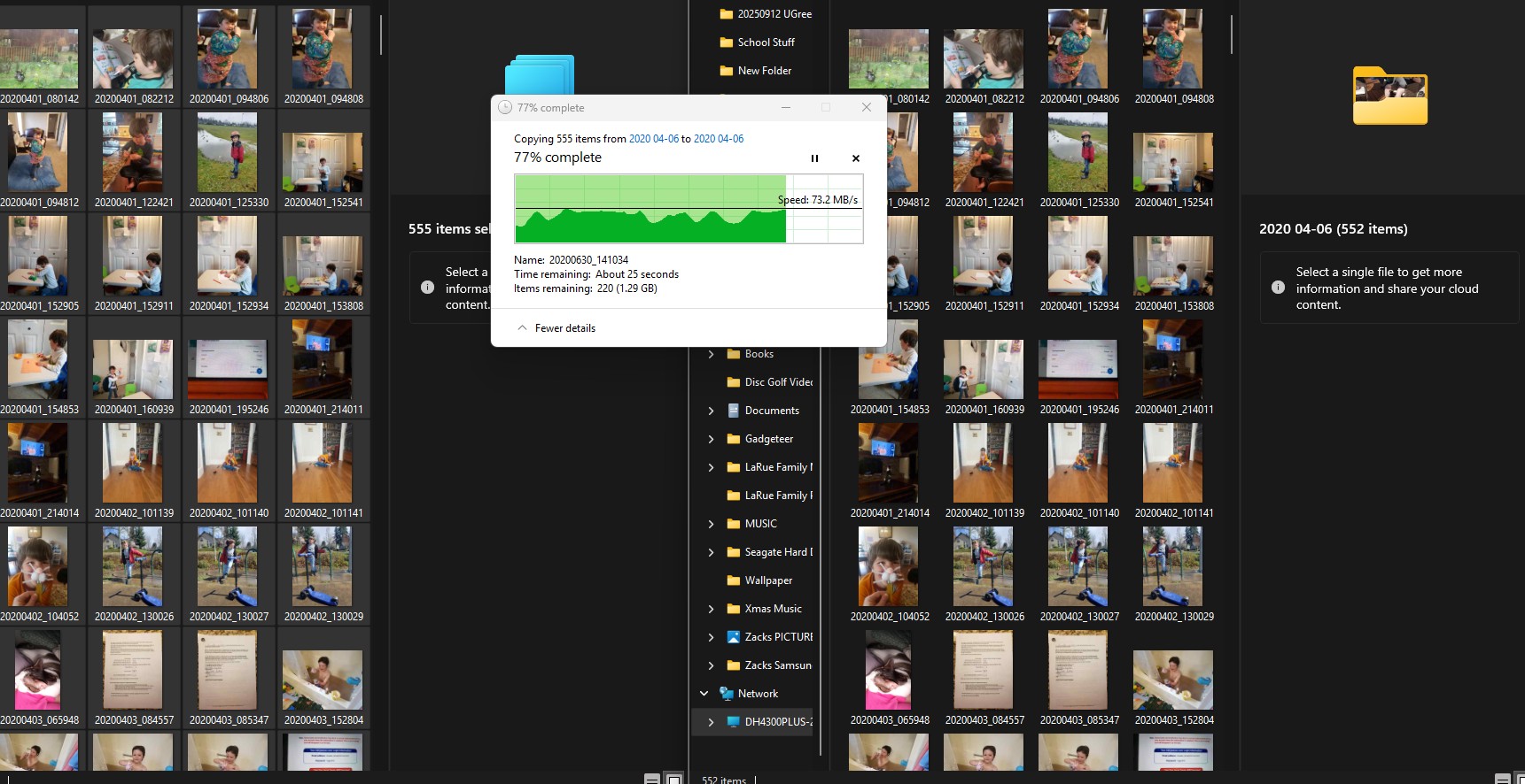 I then connected it to my laptop’s USB 3.2 SS port and transferred 10.2 GB of photos via the web interface as well which took 5:08mins for 33.9 MB/s so not much difference. I tried connecting the external drive directly to one of the two USB 3.2 ports on the UGREEN NASync DH4300 Plus and oddly enough those transfer speeds were about the same. Obviously, you are limited by your computer, external hard drive, and USB transfer speeds, but also the read and write rate of the hard drives in the NAS, so initial uploading of files may take some time. I can probably improve the transfer speeds but finding the choke points will be a project in itself which I won’t get to during this review.