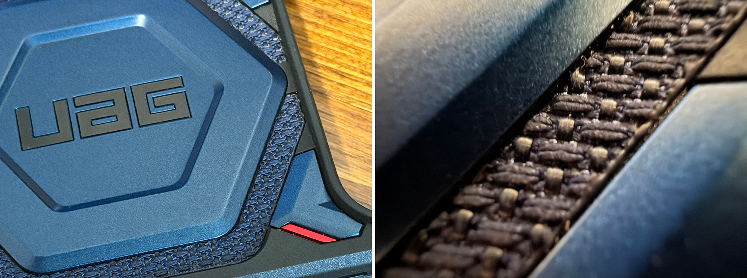 The UAG Monarch Pro Kevlar phone case has great looks. The blend of the plastic, rubber, and Kevlar layers is very well done and looks sharp. There are small red accents that give it a stylish look. I really like the design of this case. The blue used on the case I received to review is a more royal blue than the dusty blue of the iPhone. I prefer the blue that UAG used on the case more than I do the iPhone’s blue.