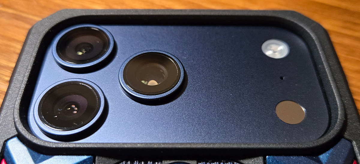 This UAG case protects all sides and the back. The camera bump, or as Apple calls it the “Camera Plateau”, is mostly exposed, with the primary protection provided by the 3mm surrounding lip, which extends a little more than 1mm above the camera lenses.