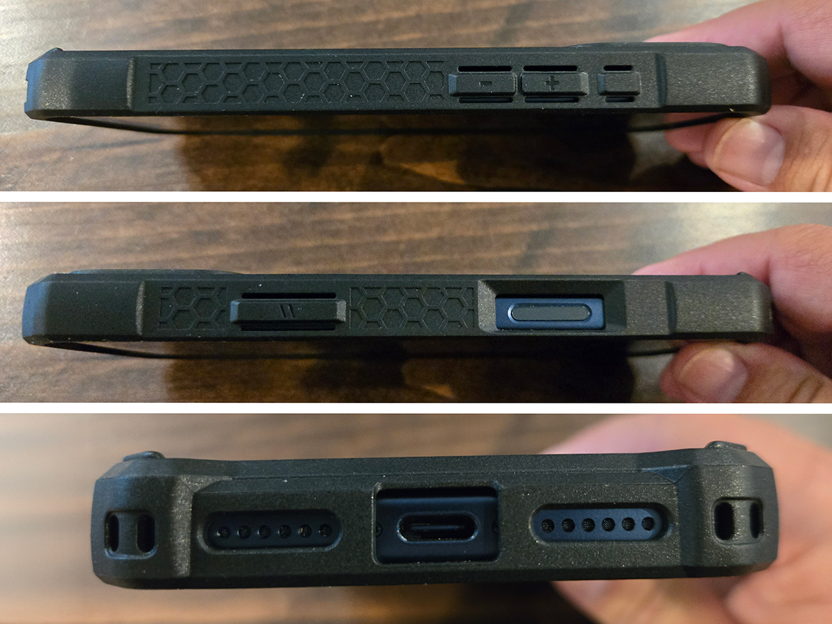 The four physical buttons on the iPhone 17 Pro Max are all covered by the same rubber material on the sides. Each button extends from the case 1mm, and the inside of these button covers are small nibs that make contact with the phone’s physical buttons, which are raised slightly. This is the only flaw I could find with this UAG case. The little nibs on the inside of the case buttons make pressing the phone’s buttons a little too easy. Almost every time I had the phone in my pocket and bent over, the volume on the iPhone would skyrocket to its maximum. I am thinking of taking my Dremel and grinding down the little nibs on the volume buttons on the case to make them less sensitive.