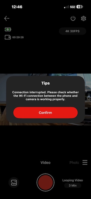 Note that I had some connectivity issues with the app disconnecting very frequently (I show an error in the image above), even with the camera and phone side by side.