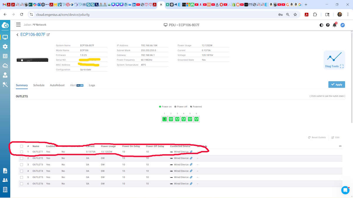 The EnGenius ECP106: 6 Outlet Cloud Managed Switchable Smart PDU is a perfect fit for my network. As I move the rest of my EnGenius equipment, including switches and my router, into the rack, I will be able to manage them all via the cloud and perform reboots, health checks, power management, etc., all from one interface. The only thing better would be to have the 12-outlet PDU. This is another great network device from Engenius.