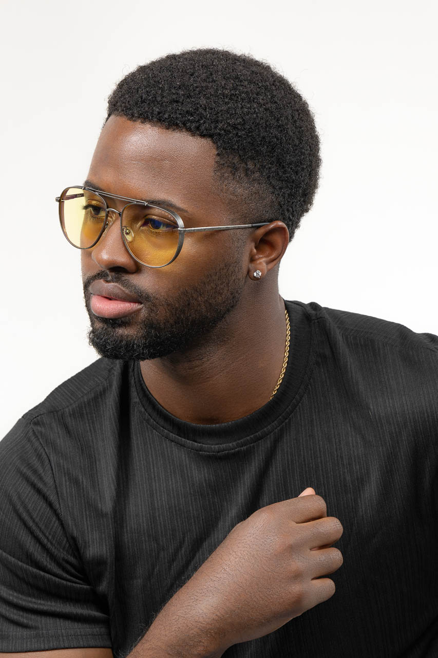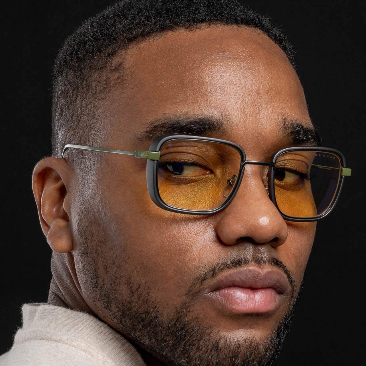 GUNNAR went with a rounded aviator silhouette here, which fits the military vibe without looking like costume eyewear. The gunmetal color sits somewhere between dark gray and faded silver, catching light in a way that feels utilitarian rather than flashy. You notice it when you tilt your head, but it never screams for attention.