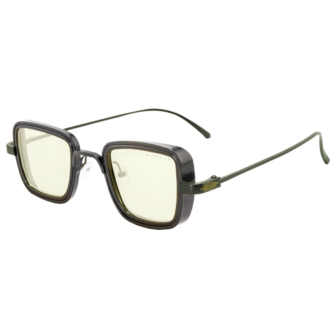 The olive green temples on the Vault 33 catch light differently than the all-gunmetal Brotherhood frame, giving it a two-tone look that stands out. If you prefer that colorway or want the lighter weight (0.7 oz vs 1.39 oz), Vault 33 is worth considering. Same GUNNAR lens tech, different faction aesthetic. Pick your allegiance.