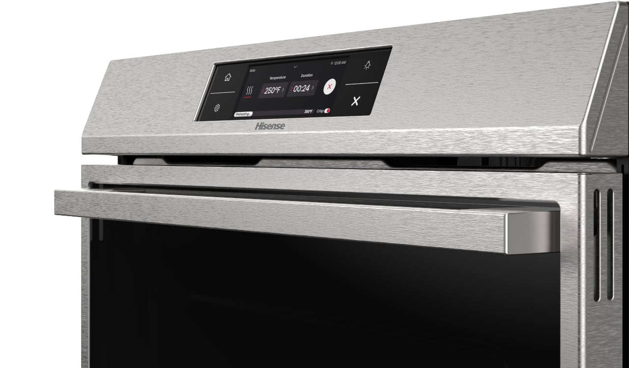 Hisense’s first smart induction range has a seven-inch screen on top. The cooktop lets you combine heating zones, so you can use a big griddle for weekend pancakes or an oversized pan without worrying about burner placement. That flexibility is something gas stoves can’t match. The oven heats up fast, which matters when you’re hungry and don’t want to wait 15 minutes. The real bonus is that the range talks to your other kitchen appliances, so everything works together.