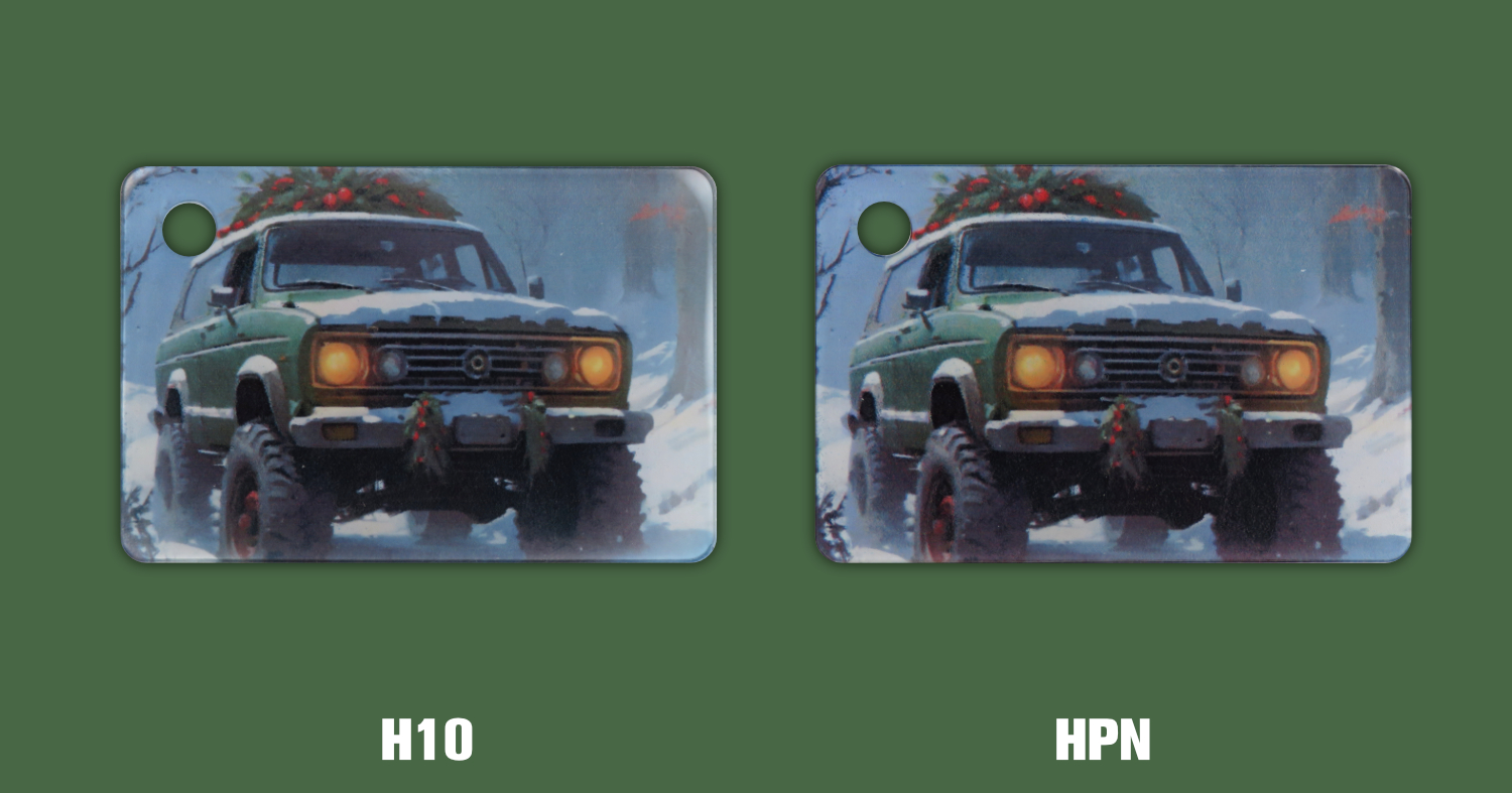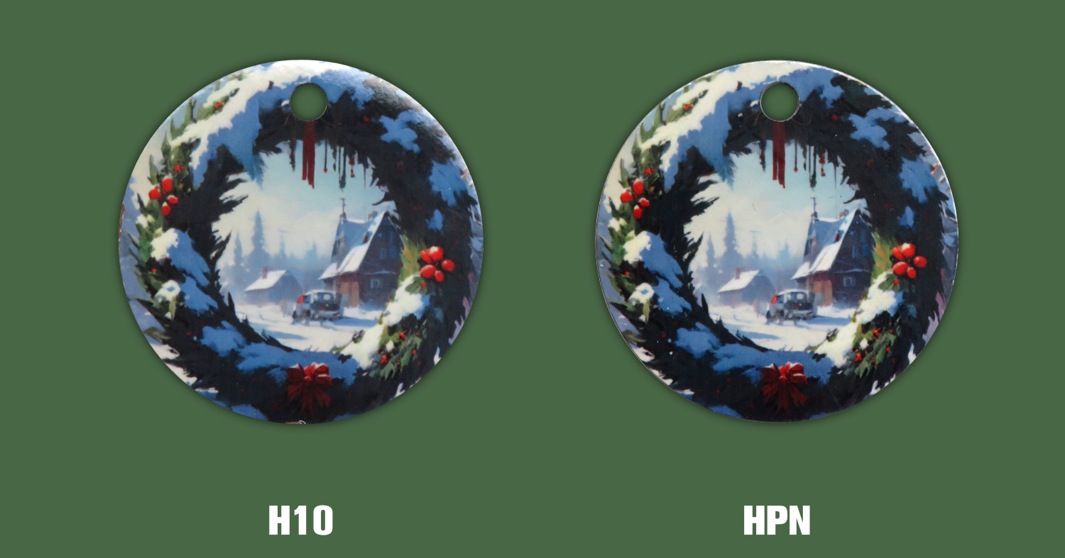 PET is a very forgiving sublimation substrate, because it is essentially a sheet of polyester, and polyester polymers are sublimation dye’s best friend. My PET sample card turned out really nicely with the weight of the H10.