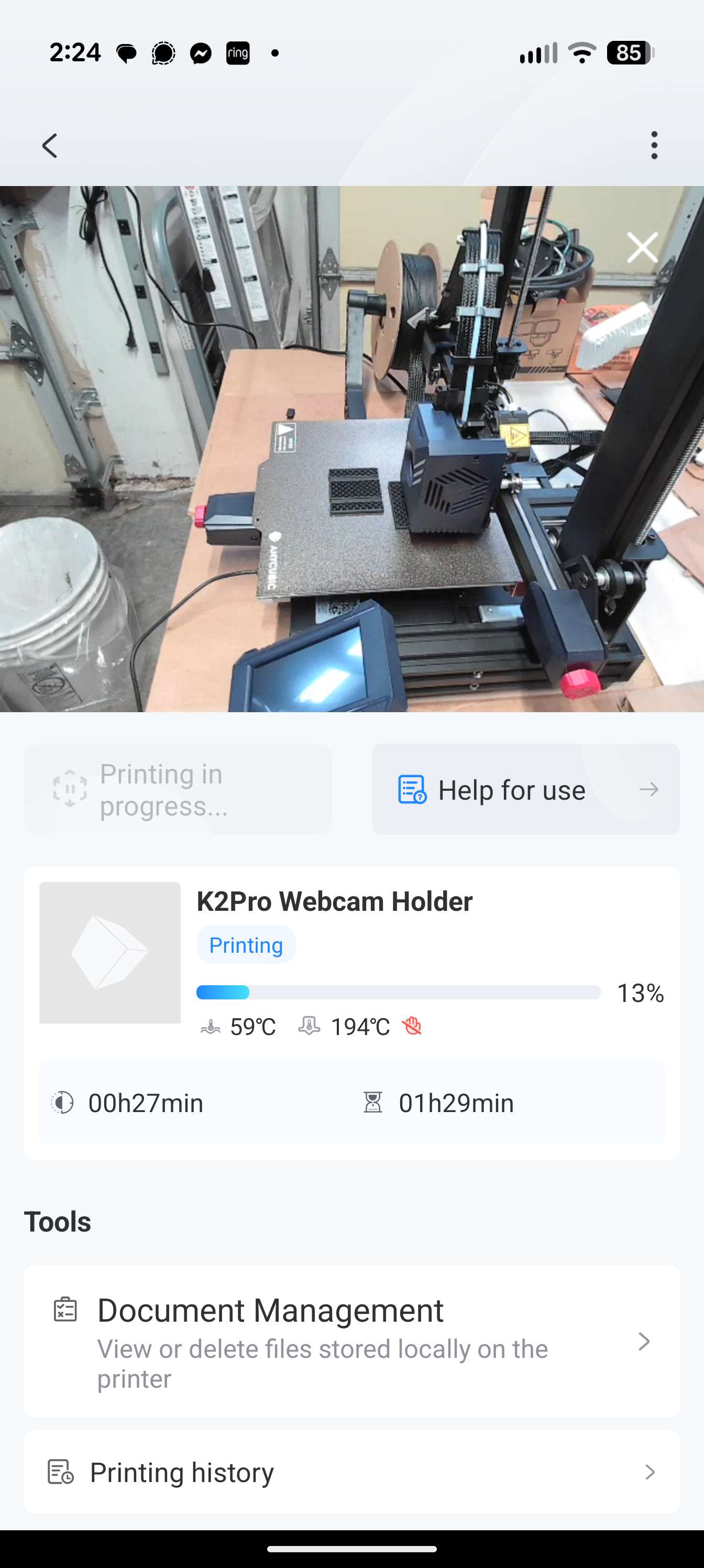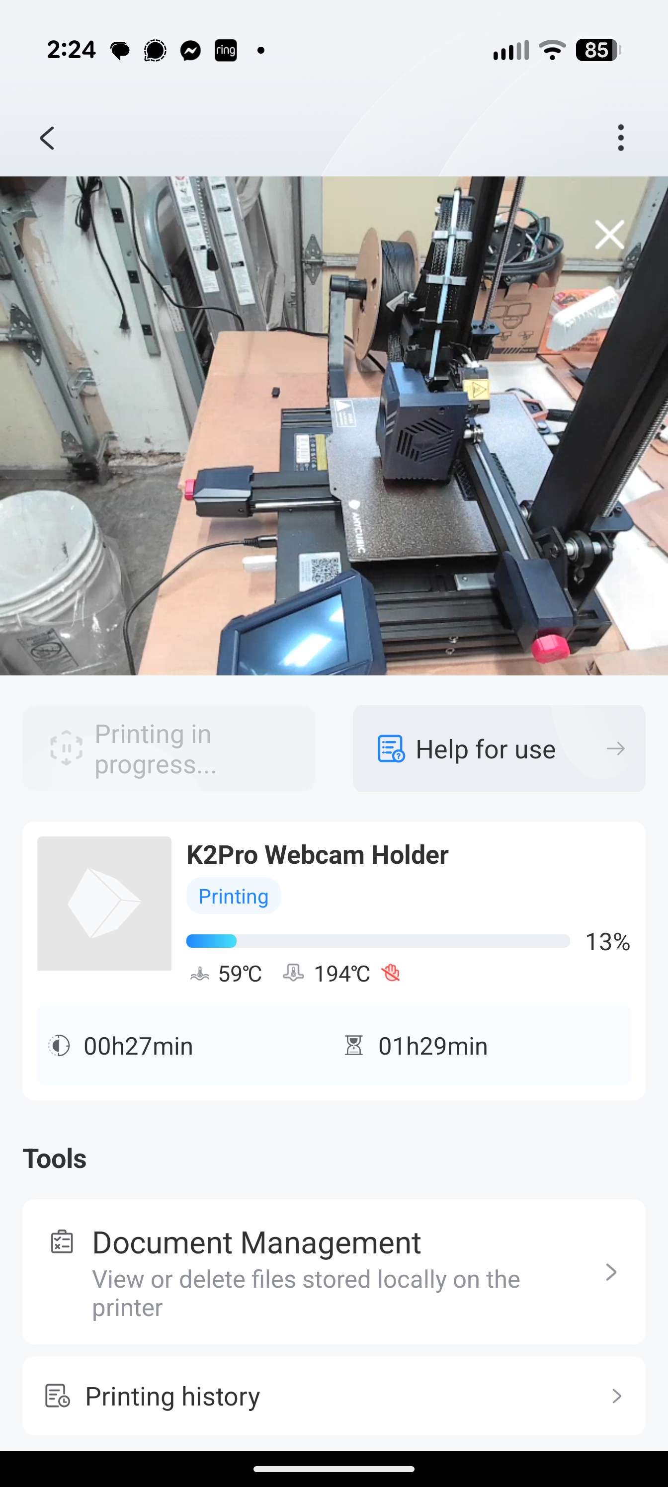 I also dabble in 3D printing and when I’m using my Anycubic Kobra 2 Pro which has a USB slot for a webcam I can now use the Targus to check on my prints while I’m away which is super cool.