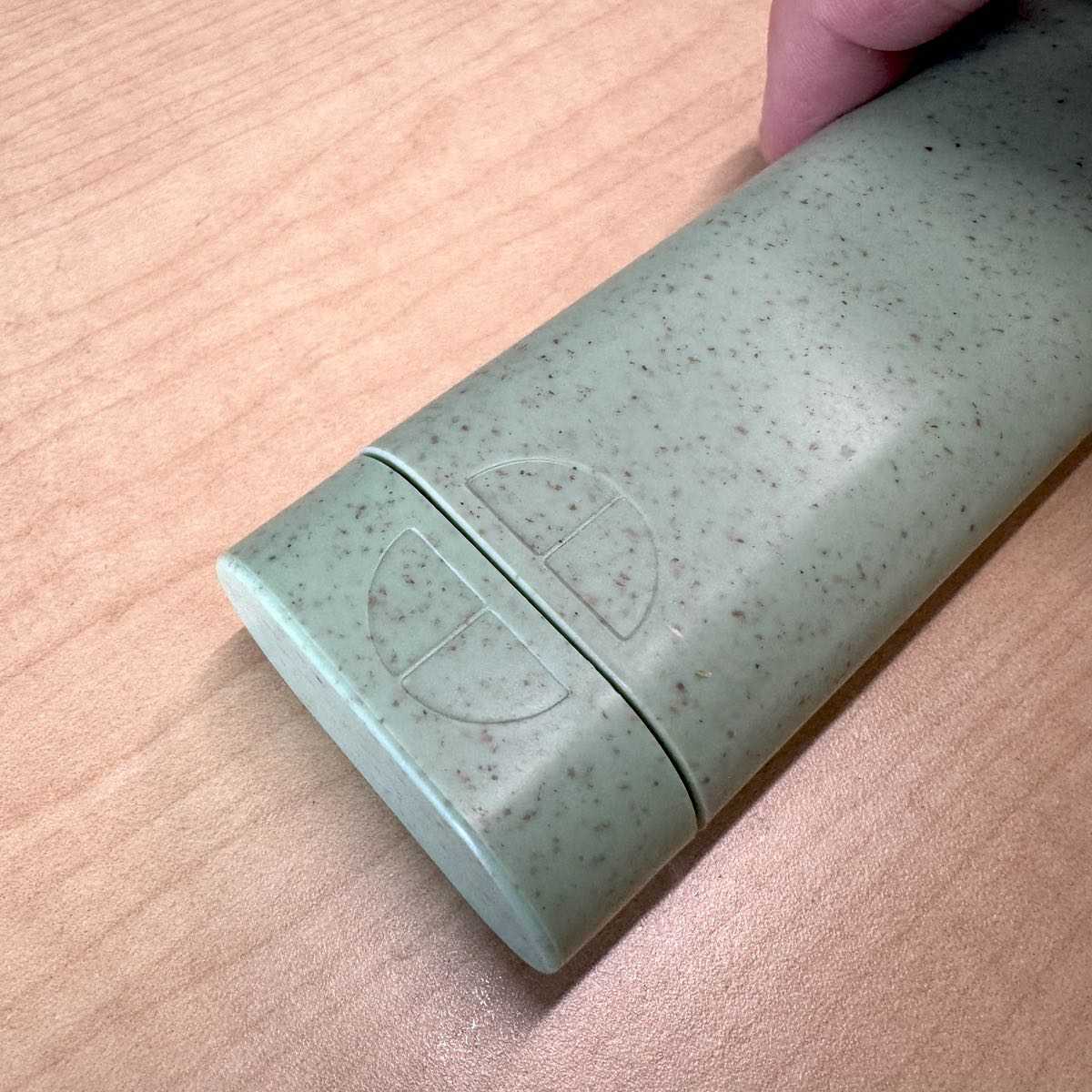 Pillar puts and emphasis on sustainability in their products. The base material here is a combination of recycled and plant-based plastics that is both Non-GMO and BPA free. It feels thick and sturdy, yet only weighs about 3 ounces overall. 7 different color schemes are offered in variations of soft pastel hues.